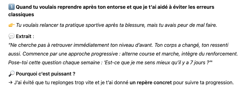 Après mon entorse je voulais reprendre vite et sur le même rythme. ChatGPT m'a aidé ans l'analyse de ma reprise