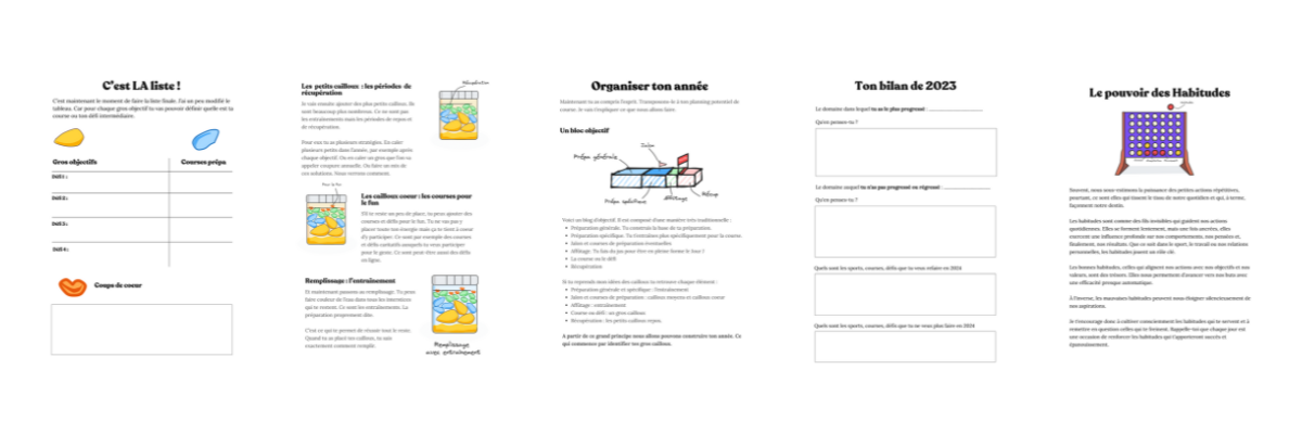 Planifie ton année sportive est avant tout un cahier d’exercices qui te pose des questions pour te guider dans la définition de ton année idéale :